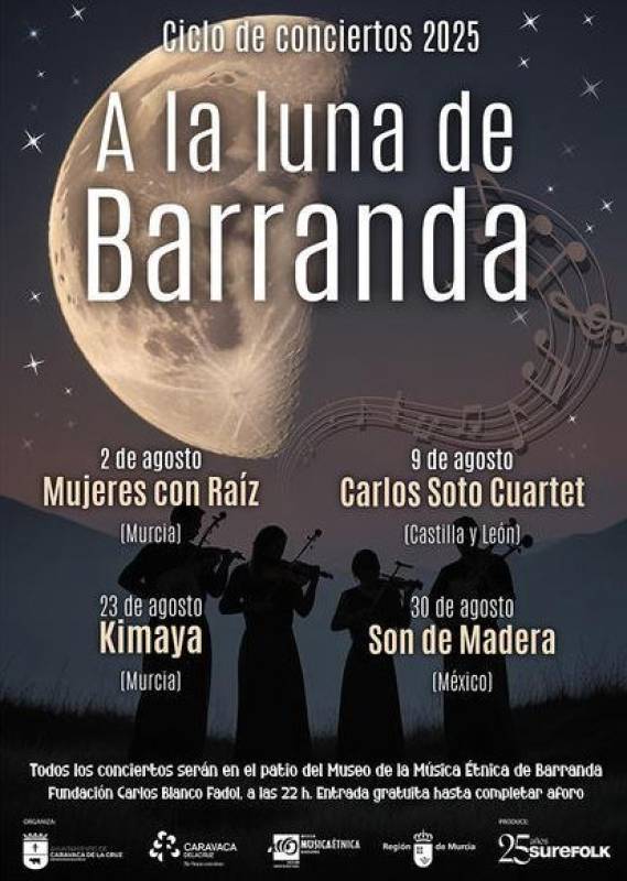 The annual “A La Luna de Barranda” season of free summer evening concerts is being held during the month of August with international musicians delighting the audiences in the cool evenings of the high ground of north-western Murcia.